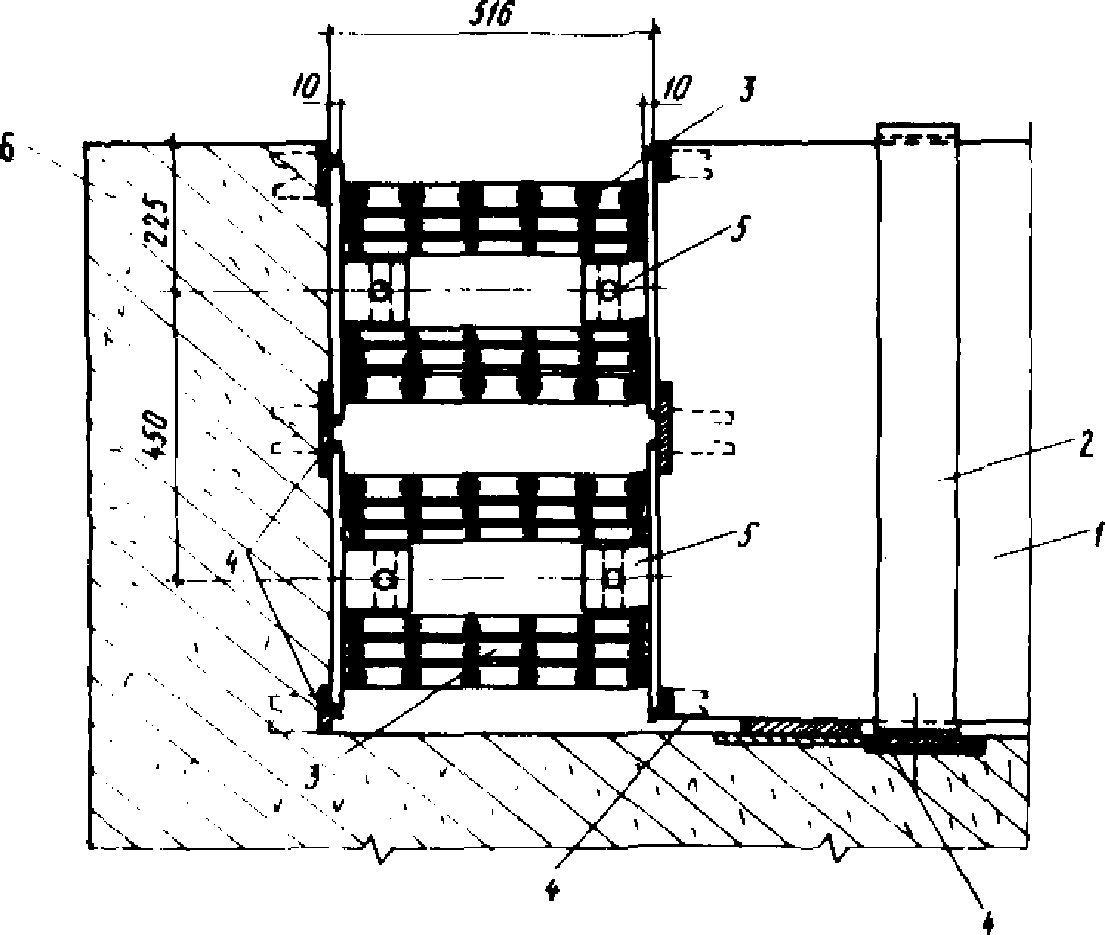 3 - надземные конструкции здания, 4 - скользящая опора,