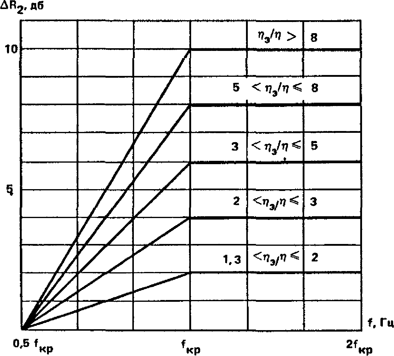 1.6. Количественно снижение уровней звукового давления характеризуется эффективностью применения звукоизолирующего кожуха R'к, дБ, которая определяется звукоизоляцией кожуха и уровнями шумового фона в расчетной точке, создаваемого неизолируемым оборудованием данного помещения и приходящим извне