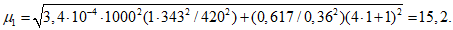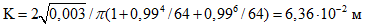 Пример 3. Рассчитаем звукоизоляцию цилиндрического кожуха, коаксиально установленного на трубопровод в октавной полосе со среднегеометрической частотой 1000 Гц. Трубопровод стальной радиуса aт = 0,36 м, толщина стенок hт = 0,01 м. По трубопроводу протекает со скоростью v = 20 м/с природный газ, скорость распространения звука в котором сср = 400 м/с. Кожух, изготовленный из алюминиево-магниевого сплава, имеет радиус aк = 0,42 м, толщина стенок составляет hк = 0,001 м.