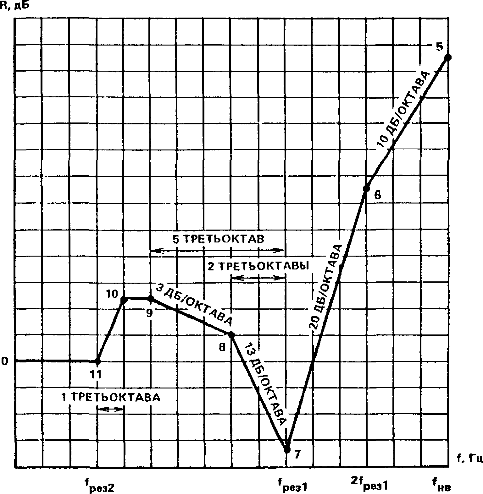 тр.к, дБ, в поддиапазоне II следует определять в октавных полосах частот по формуле