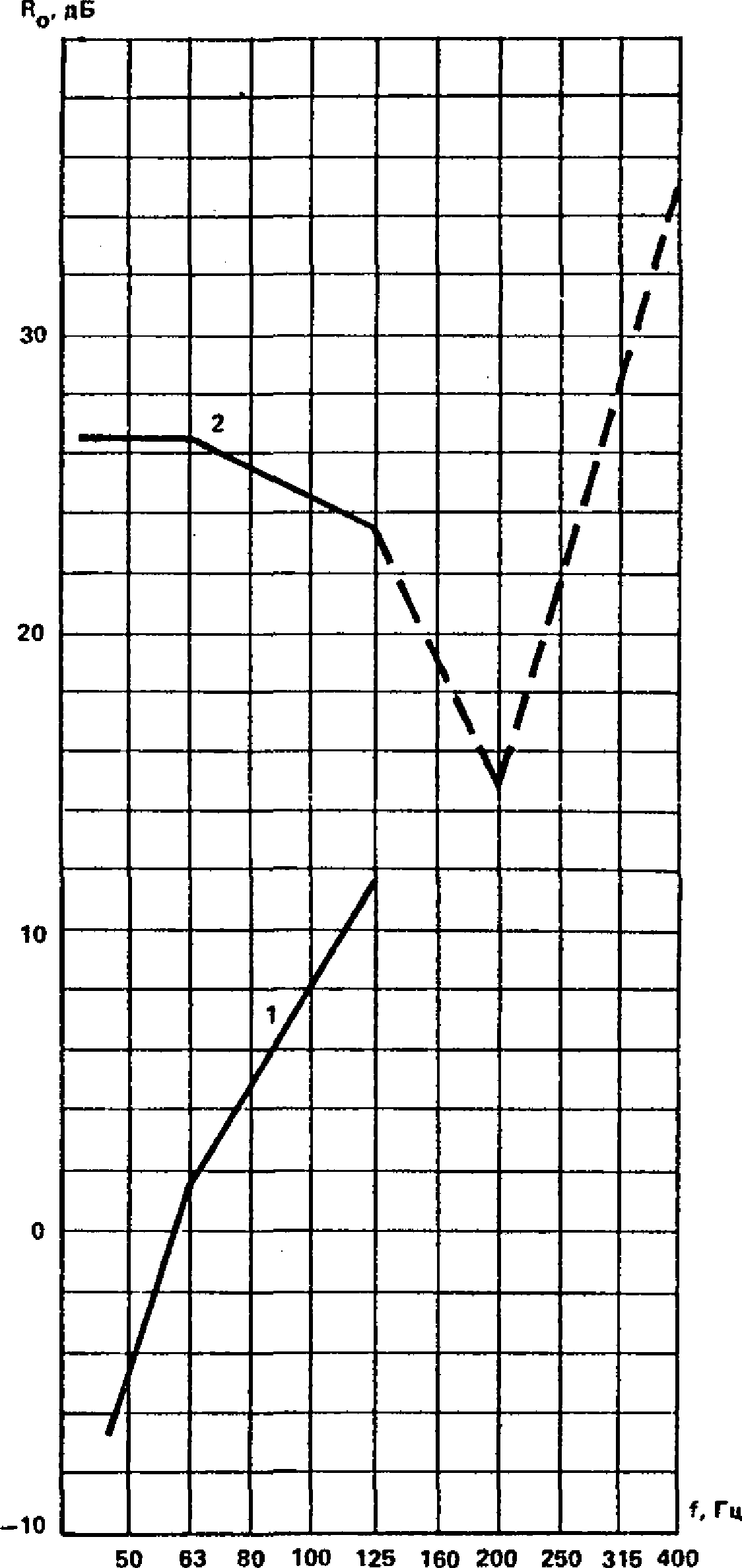 Примечание. Звукоизолирующие ограждения, выполняемые из обычных строительных материалов, представляют собой небольшие помещения - боксы, разработка которых производится в соответствии с "Руководством по проектированию и расчету звукоизоляции ограждающих конструкций зданий" (М.: Стройиздат, 1983).