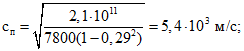 - скорость распространения продольных волн в пластине, м/с; E - модуль упругости материала стенки, Па;