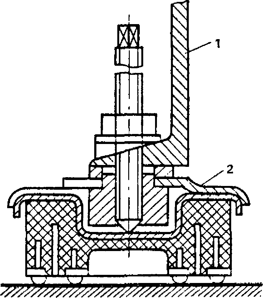 На рис. 1 изображена схема звукоизолирующего кожуха гвоздильных автоматов, конструкторская документация на который (КД N 82-046-083) имеется в Челябинском ЦНТИ. Ограждающие конструкции представляют собой металлические каркасы, обшитые стальным или алюминиевым листом толщиной 0,8 - 1,2 мм. Внутренние поверхности ограждающих конструкций оклеены поролоном, на опорные поверхности приклеена губчатая резина. Установка кожуха производится так, чтобы исключить касание с гвоздильным автоматом, маховик и клиноременная передача закрываются специальным ограждением, электродвигатель не закрывается. Снижение шума в результате применения кожуха составляет 13 - 16 дБА.