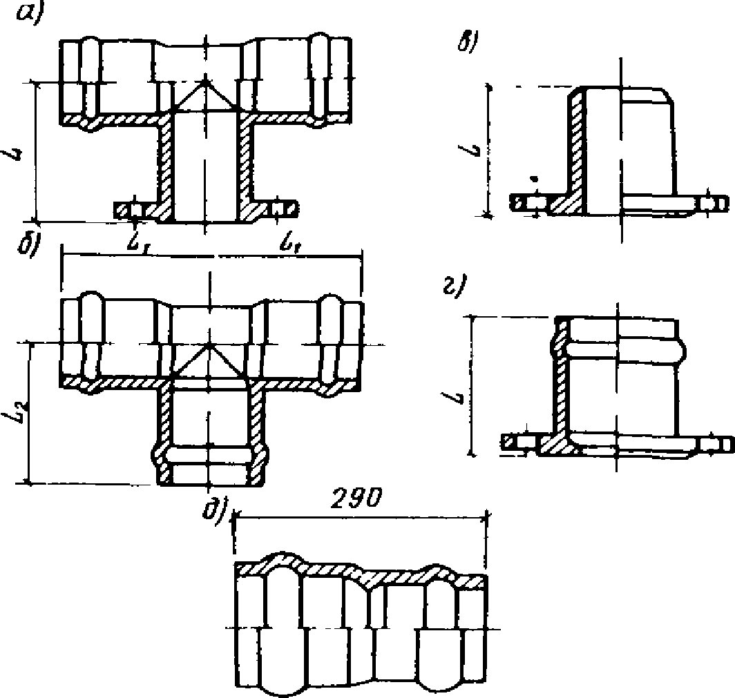 Тройники сварные с гладкими концами | О | 630, 710, 800, 900, 1000, 1200 | ||||