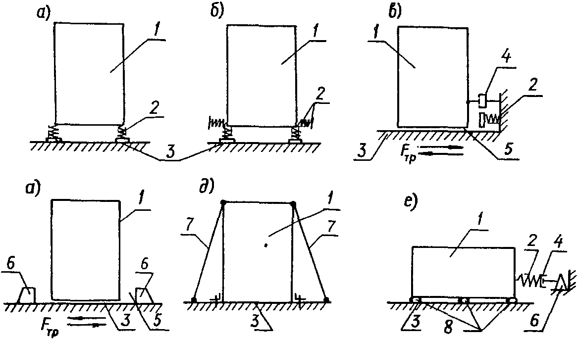 1 - оборудование; 2 - упругие элементы (амортизаторы);