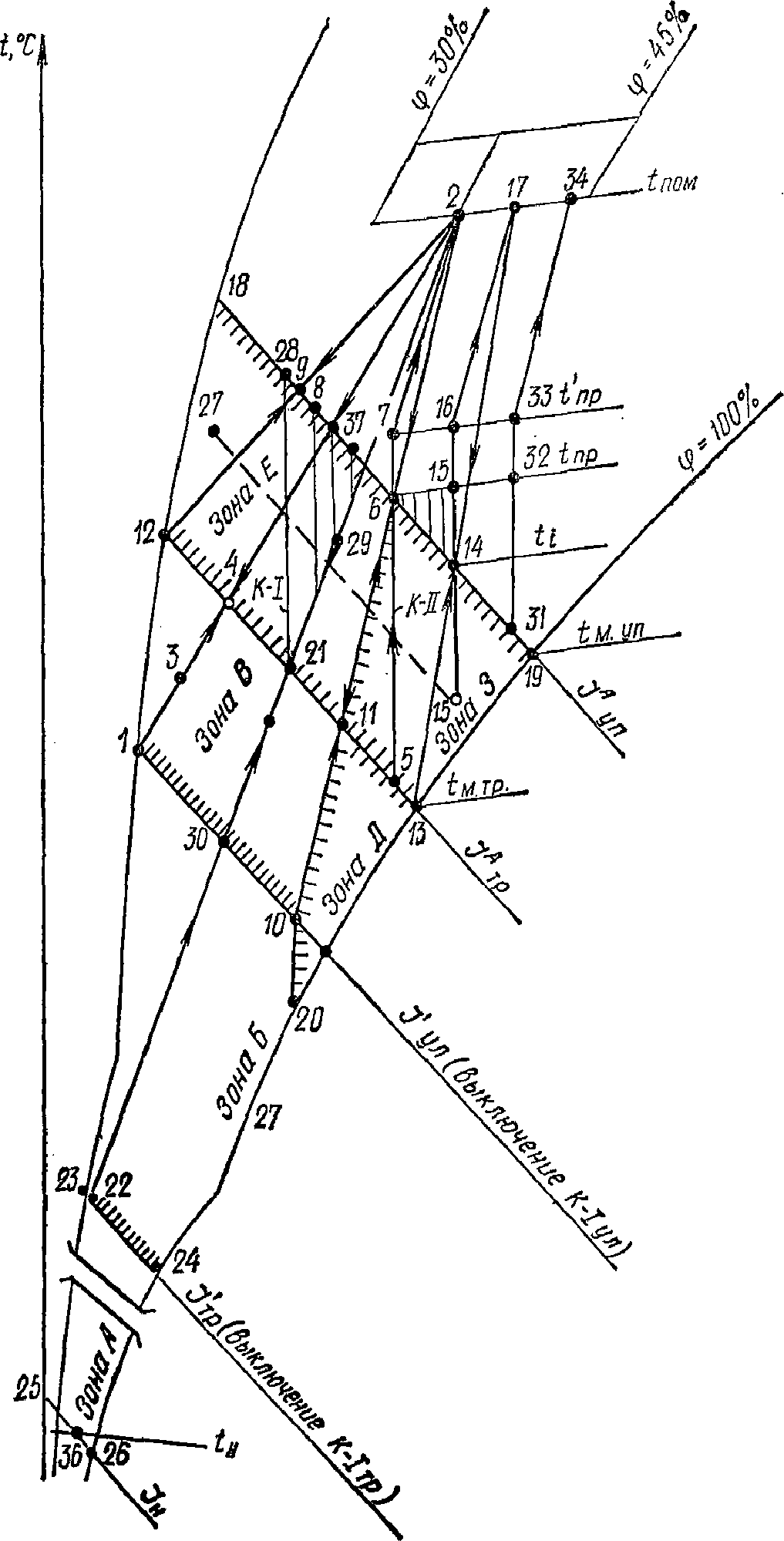Рис. 24. Процессы обработки воздуха с понижением
