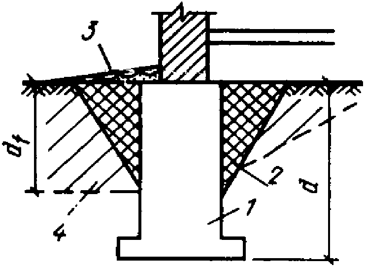 2 - засоленный грунт; 3 - отмостка; 4 - промерзший грунт