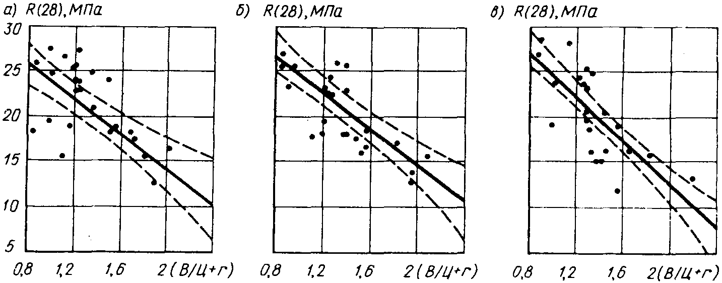 концентрации вяжущего, зависящей от свойств цемента и дисперсной части крупного и мелкого заполнителей;