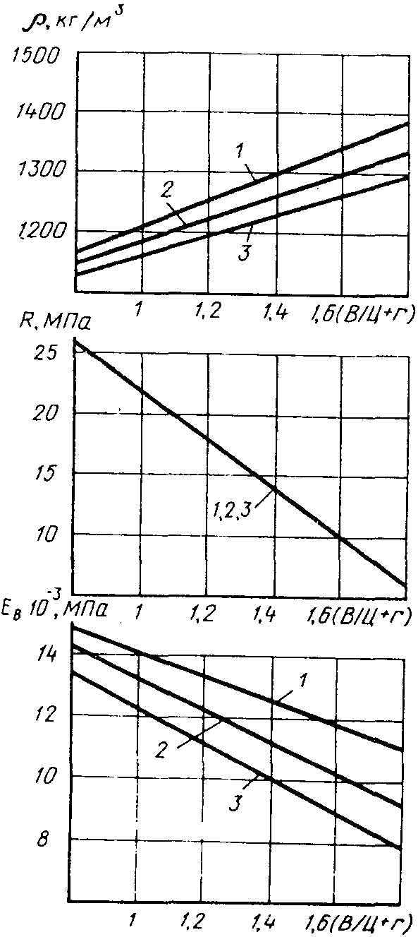 рис. 1, A, B, C - точки 1, 2, 3), устанавливая для них расходы цемента Ц и значения агрегатно-структурного фактора r соответственно: