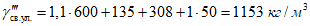 Объемная масса свежеуложенного бетона | кг/м3 | 1100 | 1050 | 1150 |
