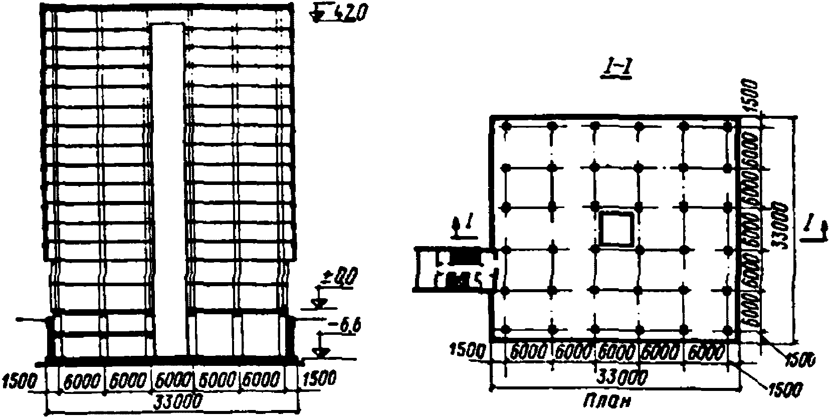 в) при строительстве зданий с временными нагрузками на перекрытия не более 2 Т/м2, в которых по технологическим, эстетическим и другим требованиям необходимы гладкие потолки и применение безбалочных бескапитальных перекрытий с малой строительной высотой вместо обычных сборных конструкций заводского изготовления обеспечивает снижение стоимости строительства.