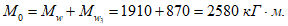 M = M1 + M2 = 836 + 3725 = 4561 кГ·м.