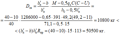 Проверка прочности сделана лишь для балки с повреждением верхней полки односторонним сколом на глубину до 45 мм. При этом учтено, что прочность бетона на этом участке несколько выше, а ширина сечения больше проектной на 30 мм. Расчет показал, что прочность такой балки даже по ослабленному сечению достаточна.