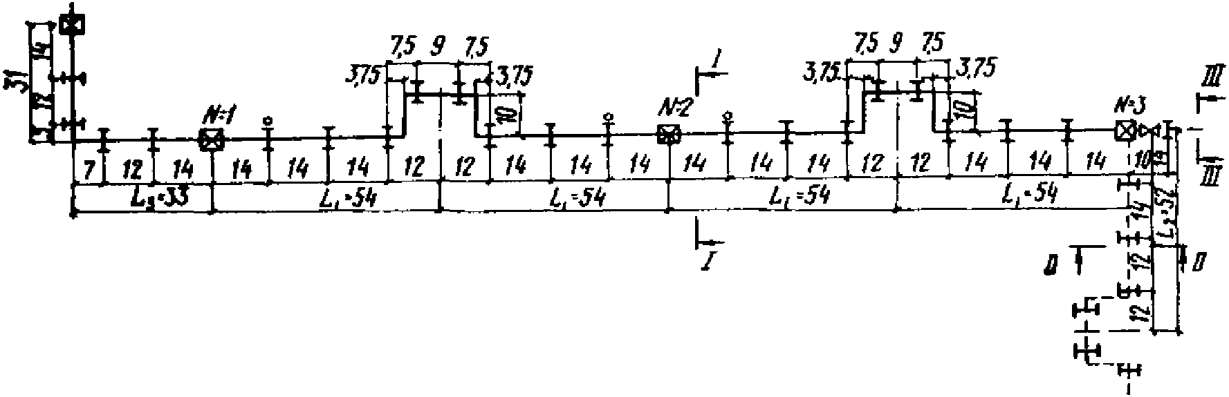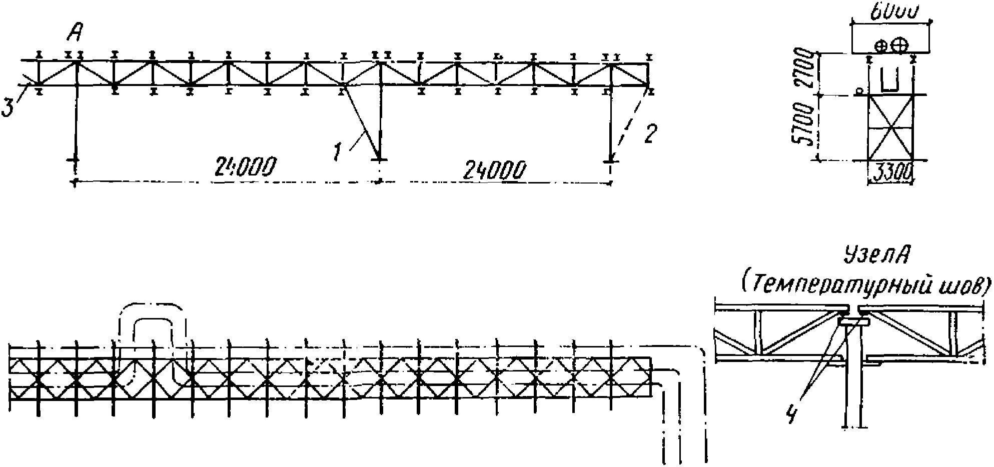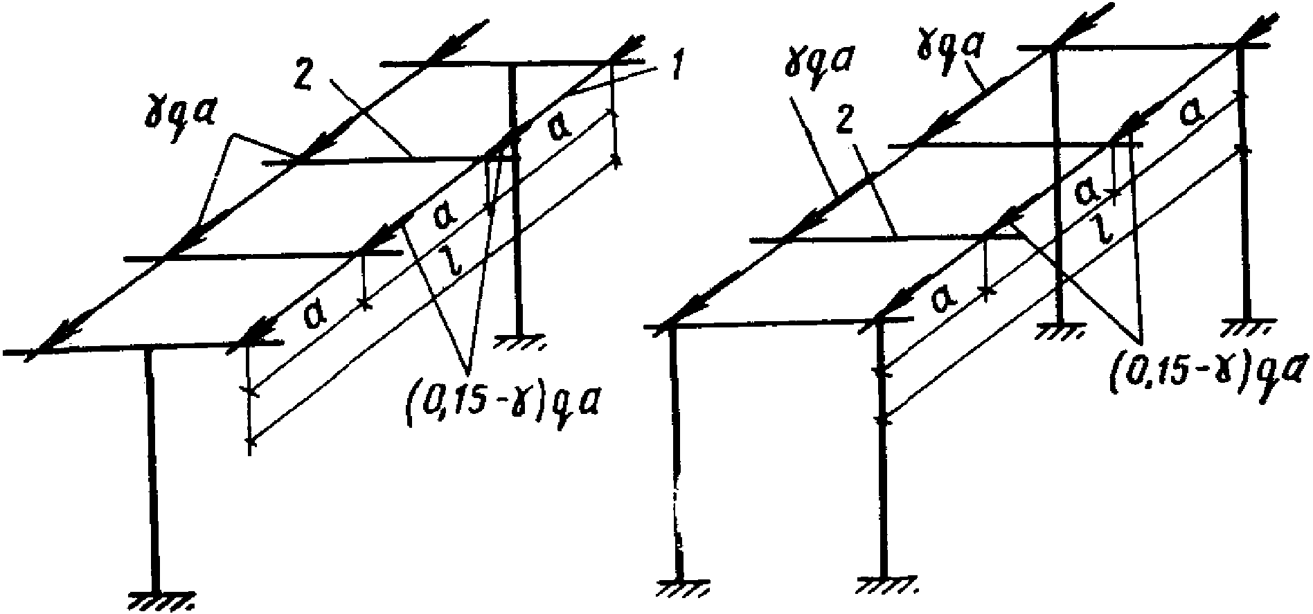 В двухъярусных и многоярусных конструкциях трубопроводы, как правило, прокладываются не только в уровнях ярусов, но и на промежуточных отметках, так что не представляется возможным провести четкую границу между ярусами. В этих случаях в качестве расчетной схемы также рекомендуется использовать систему с одной степенью свободы.