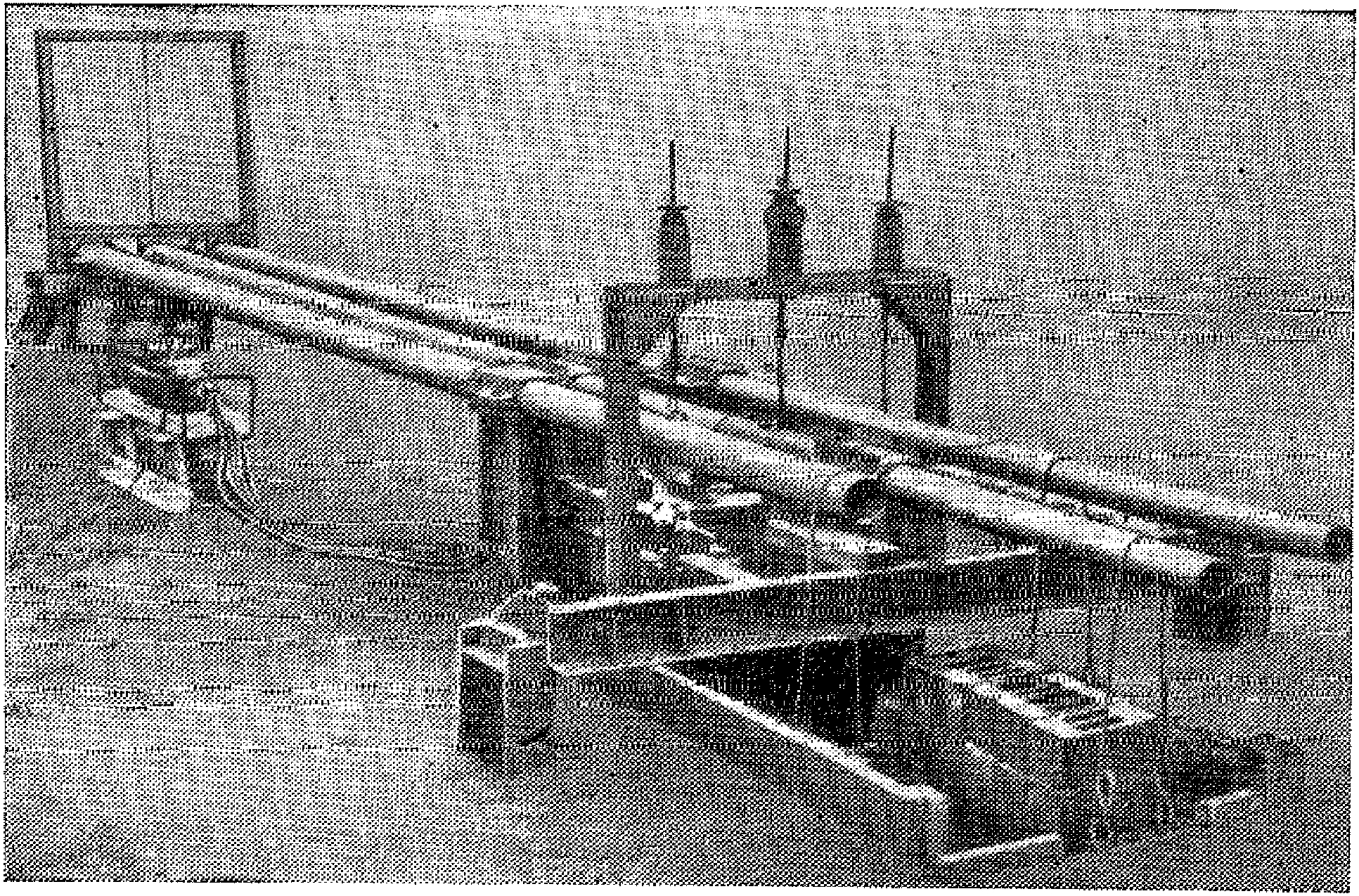 При изучении ветровых нагрузок экспериментальное определение аэродинамических коэффициентов c проводилось институтом механики Московского государственного университета им. Ломоносова совместно с ЦНИИСК им. Кучеренко. Были испытаны две модели (рис. 29). Модель А имитировала прокладку по отдельно стоящим опорам; модель Б - по эстакадам со сплошным пролетным строением. Относительная шероховатость модели в целом приблизительно соответствовала относительной шероховатости натурных трубопроводов.