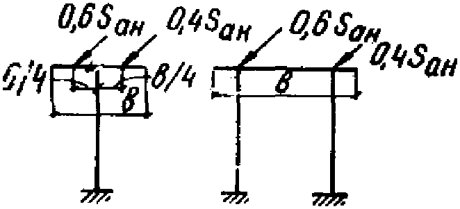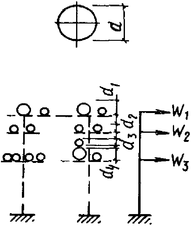 Податливость опор эстакад и отдельно стоящих опор (в продольном направлении), как правило, намного превышает податливость совокупности трубопроводов. Поэтому, предполагая трубопроводы недеформируемыми, в качестве динамической расчетной схемы рекомендуется принять систему с одной степенью свободы в виде абсолютно жесткого массивного тела, опирающегося на ряд упруго-смещающихся опор. При этом массы вертикальных элементов конструкции приводятся к уровню верхних граней траверс, на котором считается сосредоточенной масса всех трубопроводов и горизонтальных элементов конструкций. Из условия динамической эквивалентности для консольного стержня с распределенной массой коэффициент приведения принят равным 1/4.