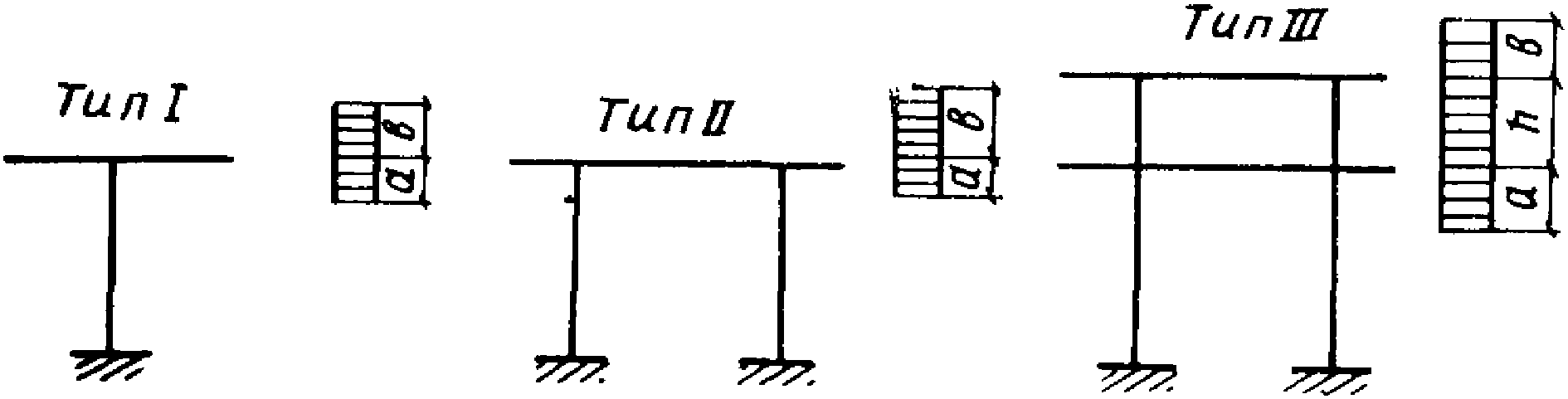 На основании вышеприведенных работ было рекомендовано при неизвестном составе и раскладке трубопроводов ветровую нагрузку на строительную конструкцию совместно с трубопроводами определять из условной высоты (ширины) ветровой полосы для конструкций различных типов (рис. 31). При прокладке по эстакадам следует принимать