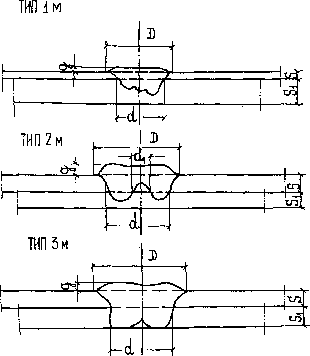 1.3. Типы, конструктивные элементы и размеры соединений, на которые распространяются рекомендации по ДТСПФ с мозаичным проплавлением, приведены на рис. 2 и в