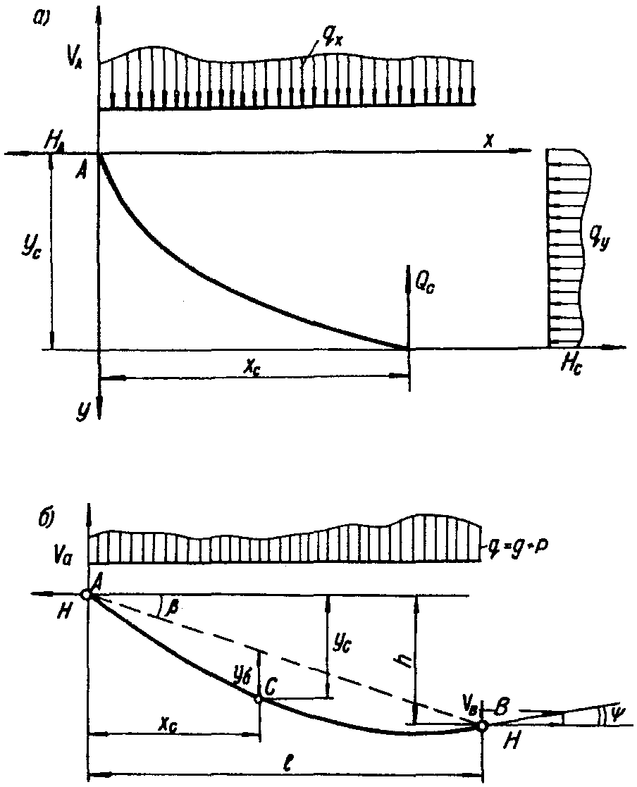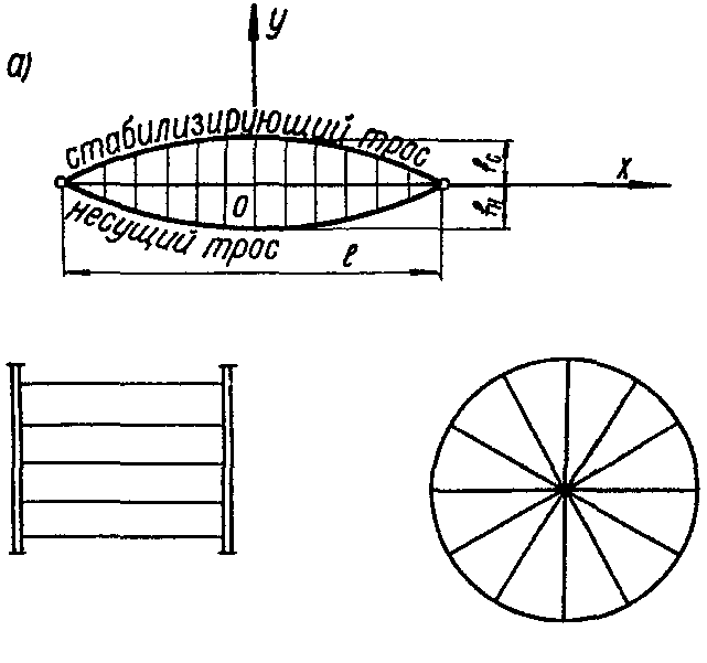 Висячими называются покрытия, в которых пролетные конструкции, непосредственно несущие нагрузку, представляют собой растянутые стержни, нити или оболочки.