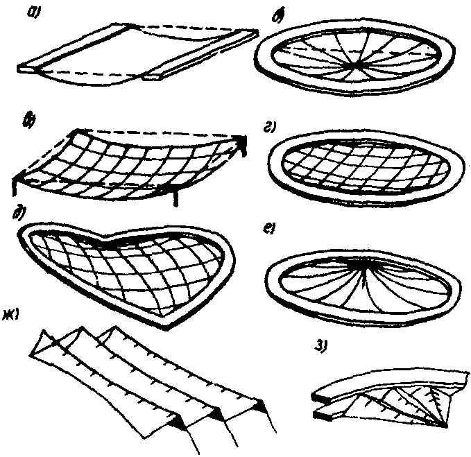 Наиболее распространенными формами поверхностей висячих покрытий являются следующие: