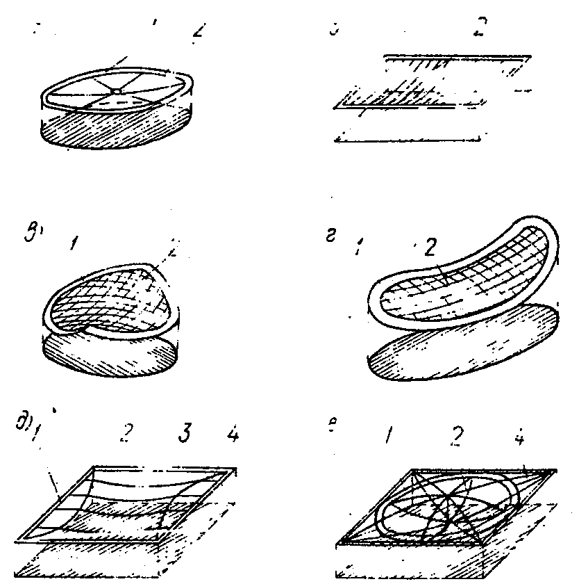 д) тонколистовых оболочек-мембран;