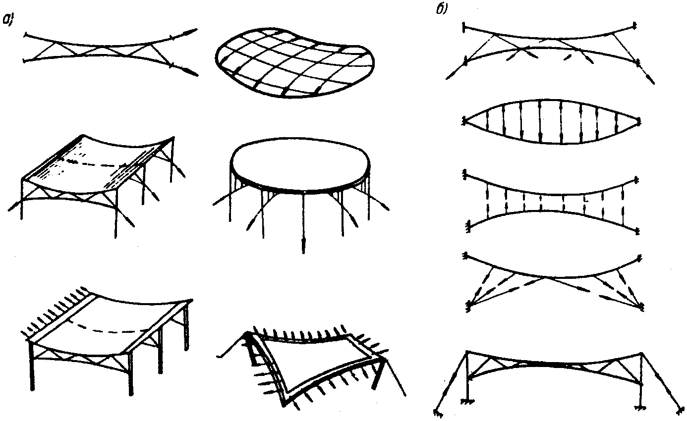 Рис. 3. Системы висячих покрытий