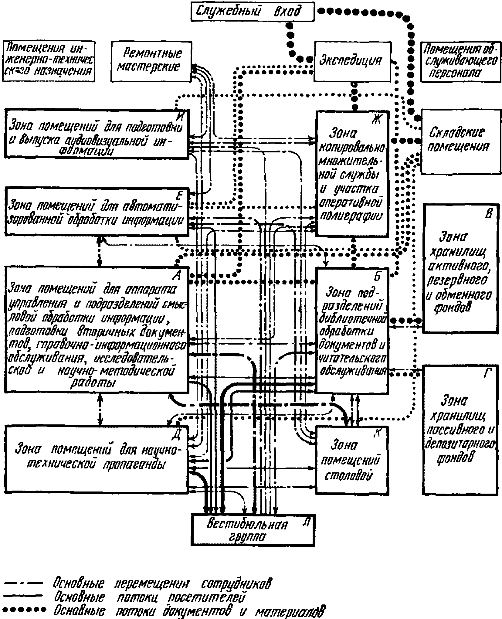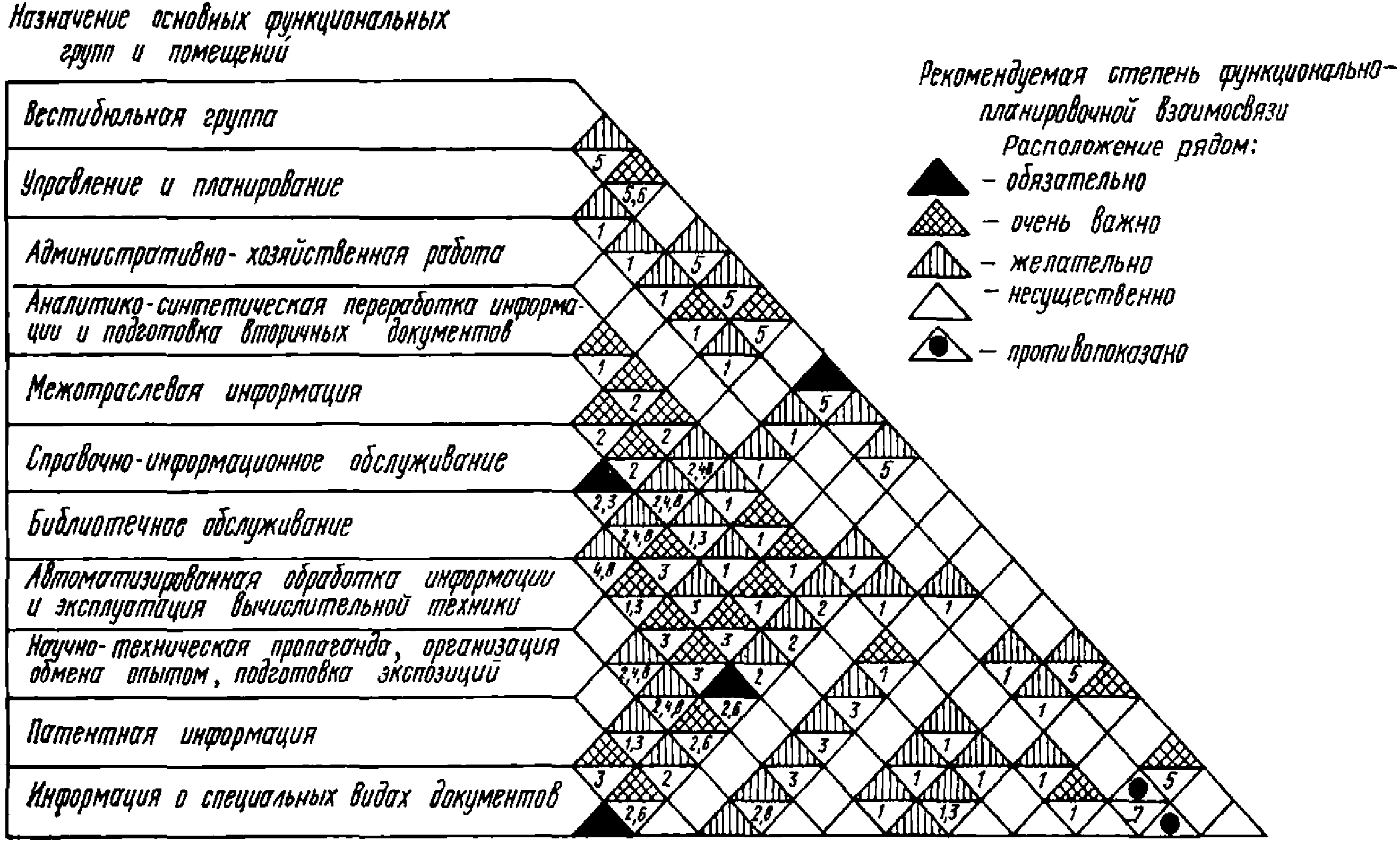 3.4. Функциональные элементы, входящие в группу управления и хозяйственной деятельности, по своим характеристикам идентичны аналогичным элементам в учреждениях группы Г согласно главе СНиП по проектированию зданий управлений. В развитом виде эта группа присутствует только в составе органов НТИ и включает: дирекцию, отдел кадров, бухгалтерию с кассой, планово-производственный отдел, отдел материально-технического снабжения, административно-хозяйственный отдел и архив. При проектировании помещений этой группы следует руководствоваться указанной главой СНиП и нормалями планировочных элементов административных зданий. Одновременно следует учитывать, что в органах НТИ, особенно некоторых отраслевых, отдел или группа режима непосредственно связана с информационным обслуживанием. В связи с этим входящие в их состав хранилища документов и комнаты для работы с ними могут получать значительное развитие и должны размещаться, как правило, в удобной связи с зоной информационного обслуживания.