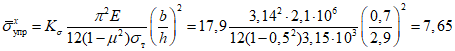 Затем вычисляется критическое нормальное "относительное" напряжение для упругой стенки