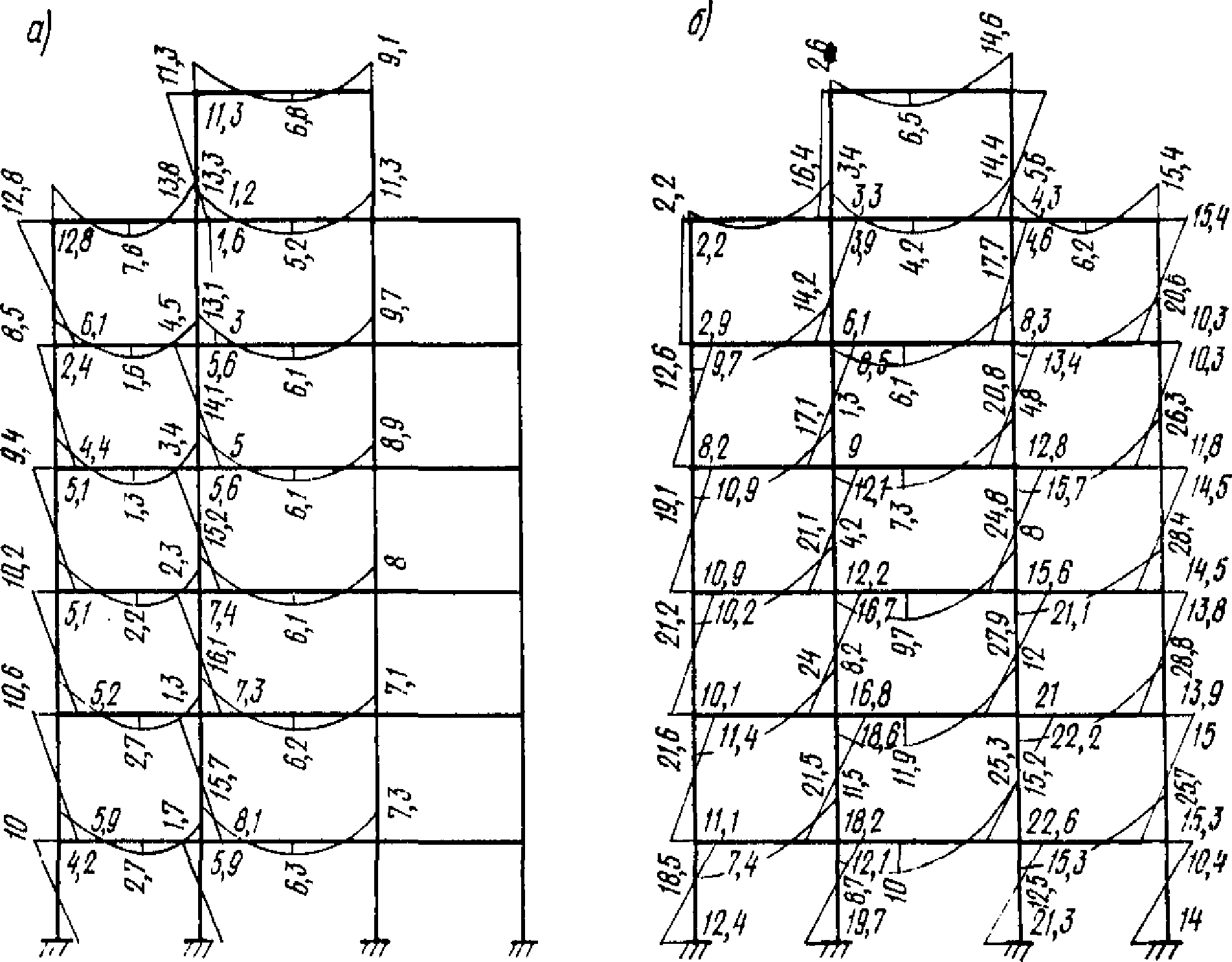 ) рамы под действием горизонтальной нагрузки (