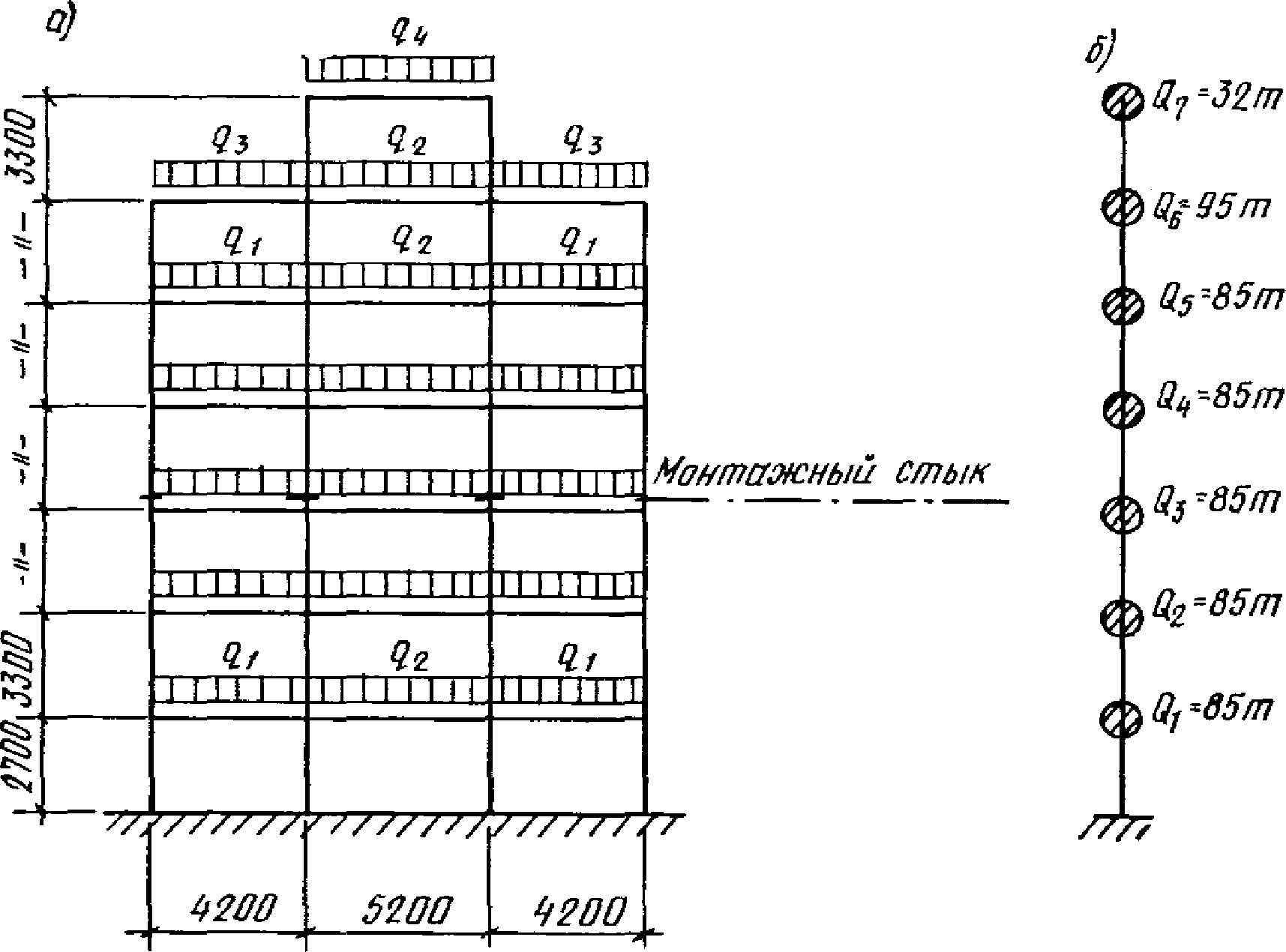Рис. 32. Схемы нагрузок и усилий