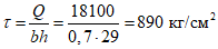 Вначале определяются касательные напряжения в стенке ригеля: