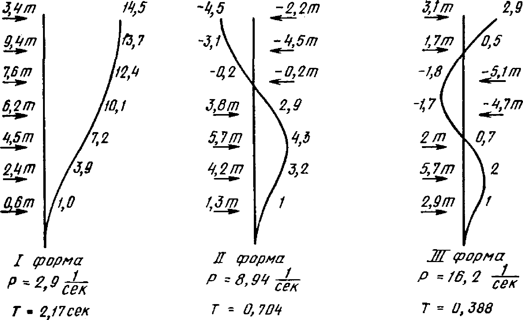 От действия сейсмических сил находятся эпюры изгибающих моментов по каждой форме. Затем в соответствии с формулой, приведенной в