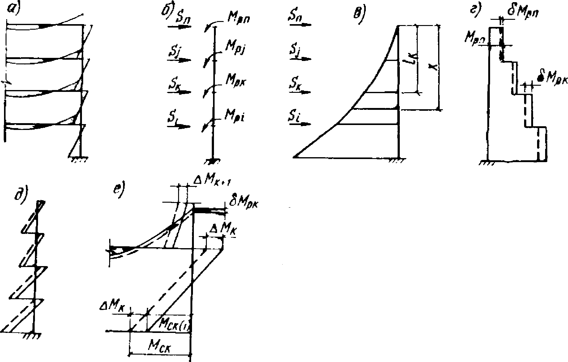 рис. 32, е представлены эпюры моментов, отвечающие этой расчетной схеме.