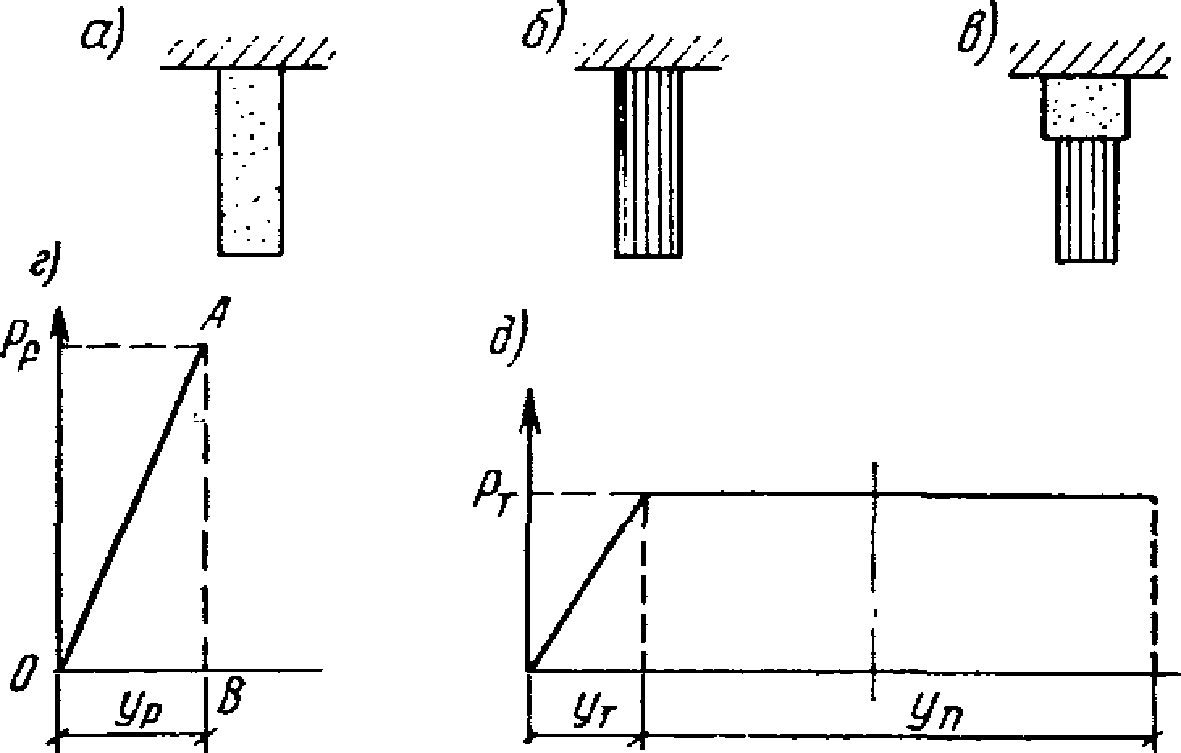 в элементе рамы, работающем в упругой стадии; д - схема
