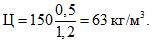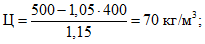 Ц - расход цемента на 1 м3 крупнопористого бетона, кг.