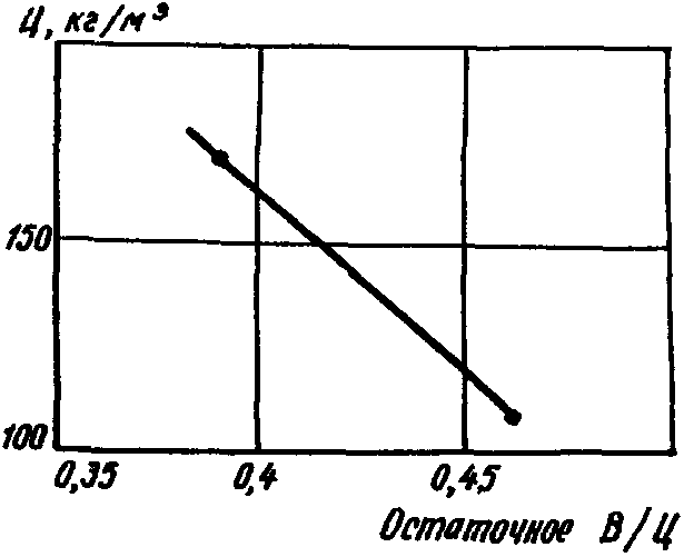 Определив взвешиванием в мерном сосуде объемную массу отсеянного цементного теста, по графику (рис. 2) находим остаточное В/Ц.