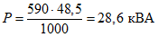 Мощность P в обоих случаях (42 и 45,5 кВА) больше расчетной.
