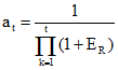 Если формулу применяют для случая, когда норма дисконта изменяется во времени, коэффициент дисконтирования равен