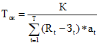 2.4. Сроком окупаемости называют время реализации разработки (проекта) до того времени, пока не будут возвращены средства, затраченные на капиталовложения. Этот показатель дает наиболее точные результаты при оценке краткосрочных проектов с окупаемостью капитальных вложений в срок, не превышающий один год. Срок окупаемости (Т) в этом случае определяют по формулам