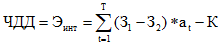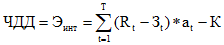 2.1. Чистый дисконтированный доход ЧДД (интегральный эффект Э) - превышение интегральных результатов над интегральными затратами, приведенными к одному моменту времени.