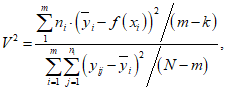 Описанную процедуру повторяют многократно, принимая последовательно каждую из групп за проверочную. В результате получают суммарный показатель адекватности полинома