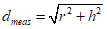 Примечание: Если испытуемое оборудование установлено на большой высоте, то фактическое измерительное расстояние при этом определяют по прямой линии между испытуемым объектом и измерительной антенной с использованием следующего выражения:
