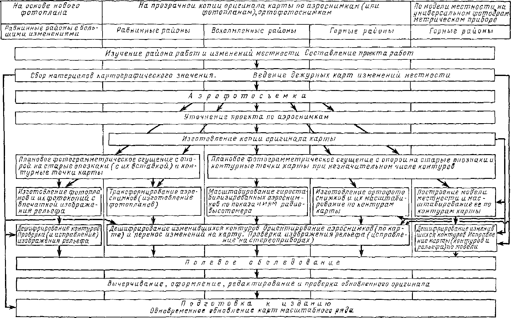 Когда возникает необходимость полного обновления карты, производится аэрофотосъемка и дополнительное исправление карты по аэроснимкам или выполняется полевое обследование.