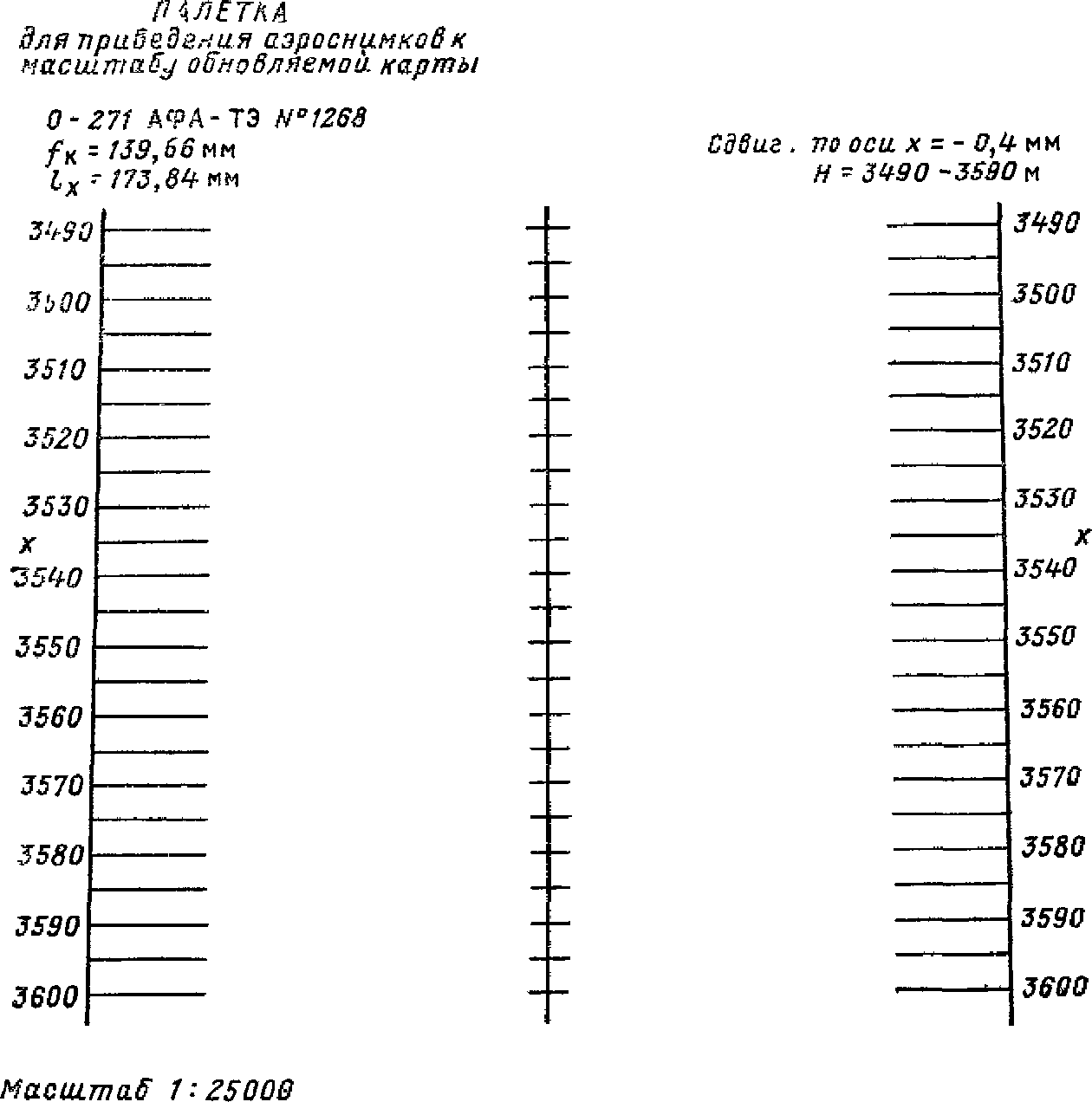 соответствовали расстояниям в заданном масштабе между главной точкой аэроснимка и левой и правой координатными метками прикладной рамки аэрофотоаппарата. Полученные точки пересечения оси палетки с линиями