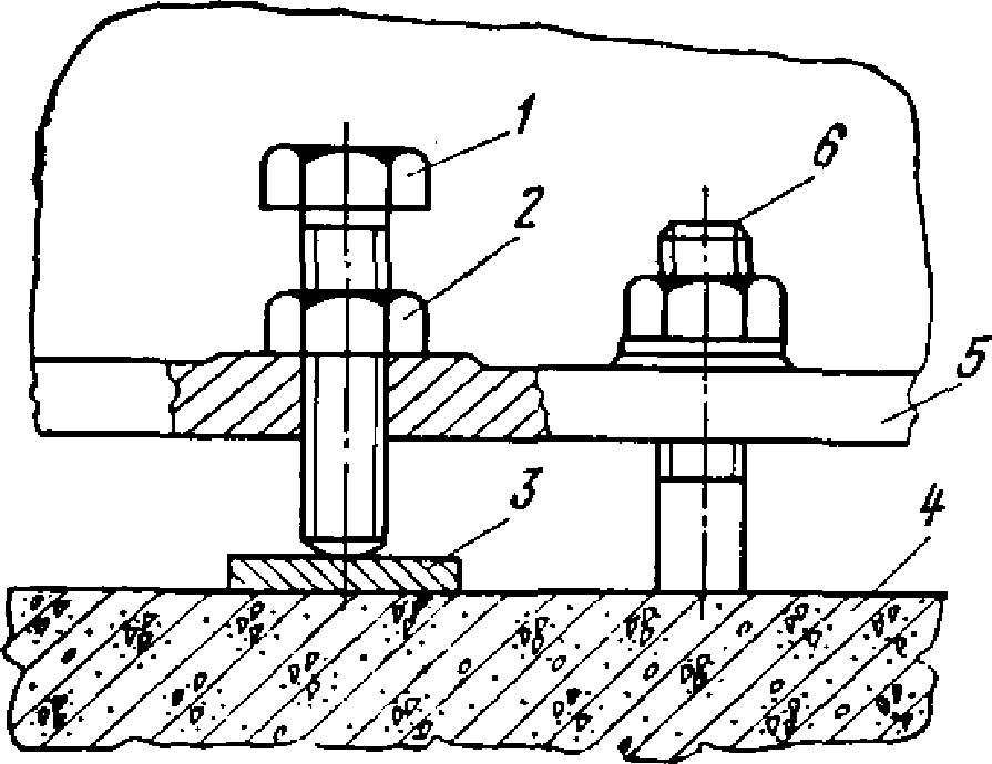 Болты, закрепляемые эпоксидным клеем, могут устанавливаться как до, так и после монтажа и выверки оборудования через отверстия в опорных частях.