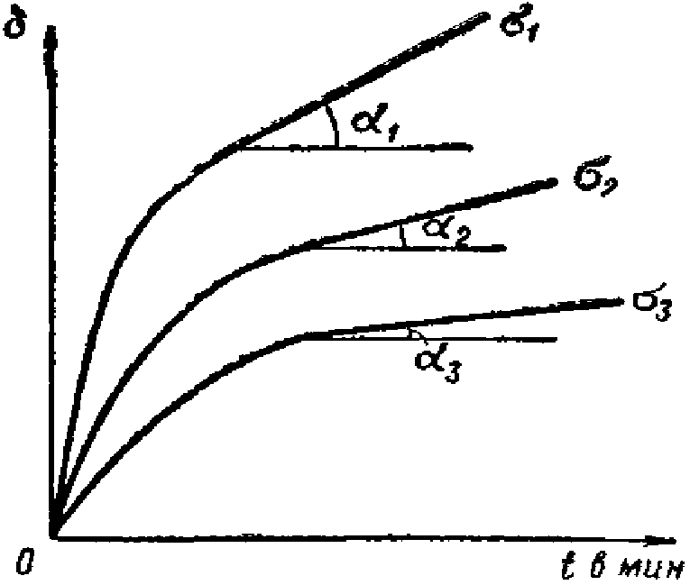 h - первоначальная высота образца). По результатам испытаний образцов данной серии получают семейство кривых ползучести, при этом каждая кривая соответствует своему постоянному значению напряжения