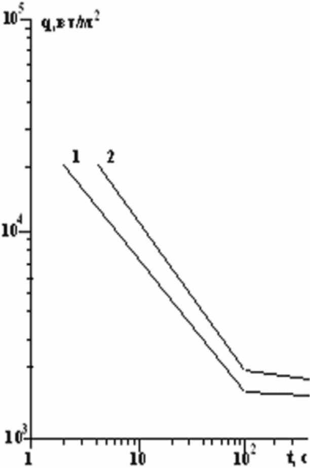 (Приложение 4), полагается, что при времени облучения 10,8 с (времени существования огненного шара) воспламенение произойдет при q