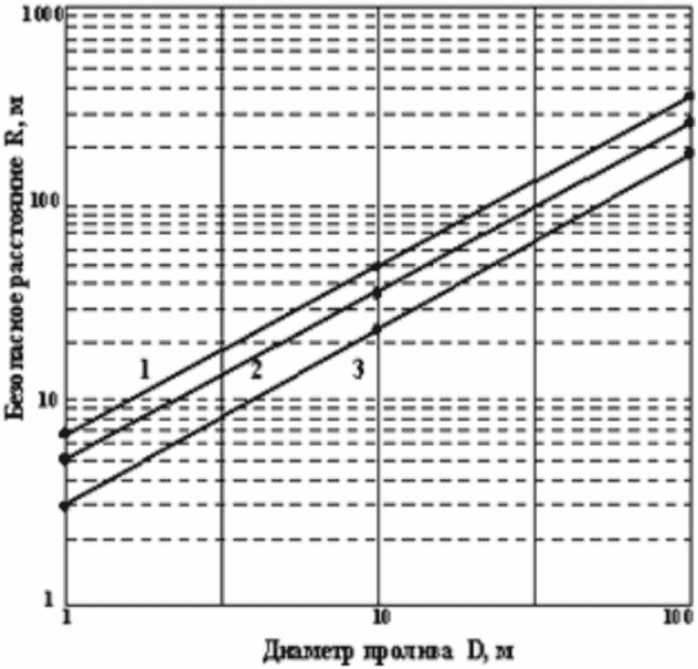 Таким образом, граница опасной зоны (зоны возможного распространения пожара) расположена на расстоянии 30 м от границы пролива.