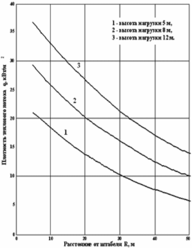 Ближней границей зоны теплового воздействия является зона горения. За дальнюю границу теплового воздействия обычно принимают такое расстояние, где интенсивность теплового потока равна 3,5 кВт/м2.