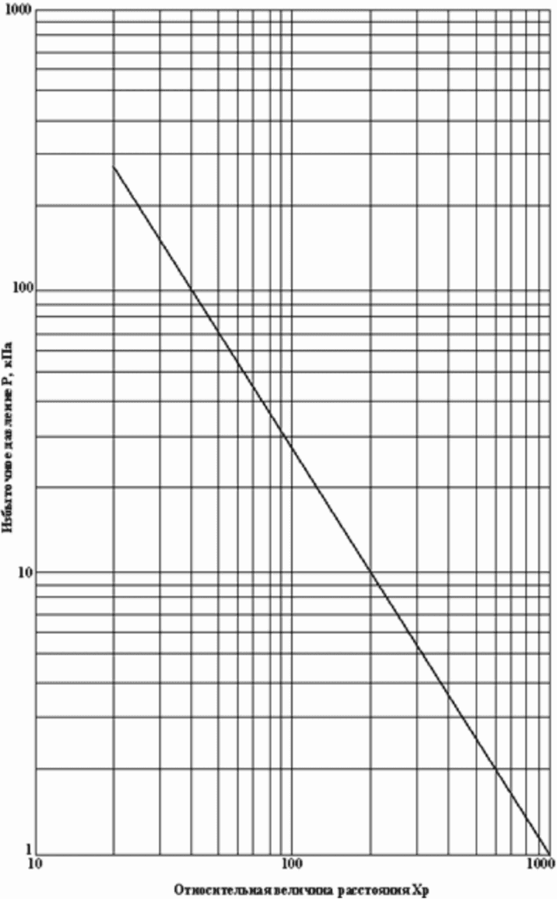 рис. П.16.1 показана зона возможного распространения пожара, т.е. при нахождении в данной зоне горючих материалов произойдет их воспламенение.